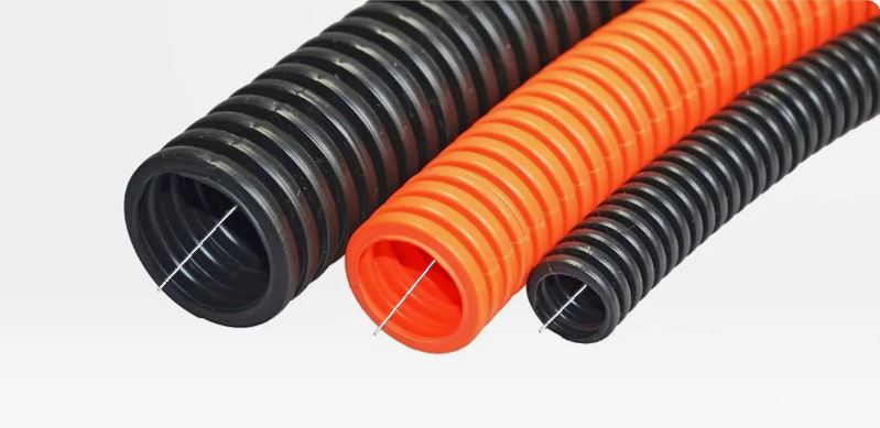 Труба гофрироанная из ПНД (полиэтилен низкого давления), без галогенов и устойчивая к ультрафиолетовому излучению. Цвет черный. (синий, красный, оранжевый.- под заказ)