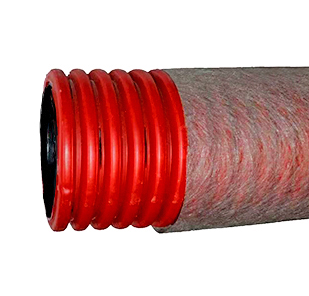 Труба гофрированная двустенная ПНД (полиэтилен низкого давления), наружный диаметр 160мм. С геотекстилем. Цвет красный, черный.